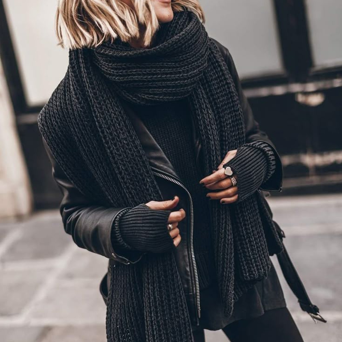 This extra long + wide scarf can be dressed up with work wear or dressed down with snug winter casual wear. Made from acrylic wool or cotton yarn in greys and charcoal this is suited to anyone looking for some real warmth in an understated style.SIZE:2.5m Long35cm WideColour Choice: GreyCharcoal